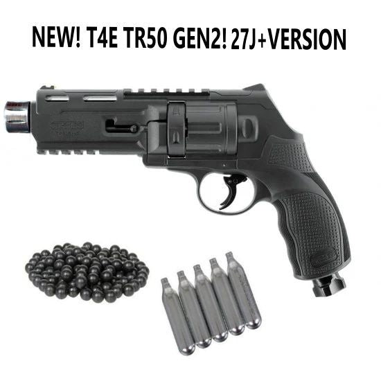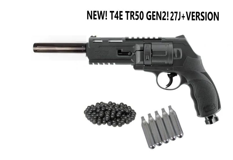 1x HSA CUSTOM TR50 GEN2 (Black) , 5x 6 Shot Rotary Magazines, 1x Steel Tuning Barrel W/Extension, Manual, and for limited Time Only FREE 25ct .50Cal Genuine T4E RIOT/Rubber Balls and 5x 12Gr. Co2 Cartridges.