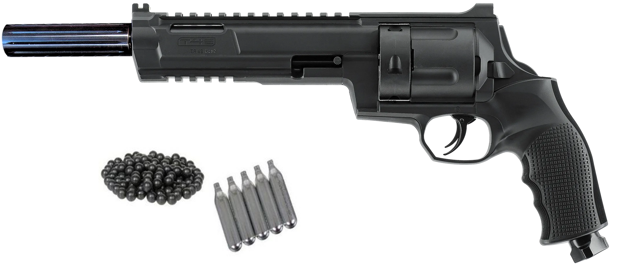 1x HSA CUSTOM TR68 GEN2 (Black) , 3x 5 Shot Rotary Magazines, 1x Steel Tuning Barrel W/Extension, Manual, and for limited Time Only FREE 25ct .68Cal Genuine T4E RIOT/Rubber Balls and 5x 12Gr. Co2 Cartridges.